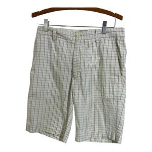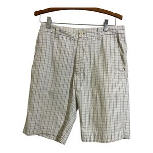 Jack Spade mens striped cream color flat front shorts pockets. Size 30.