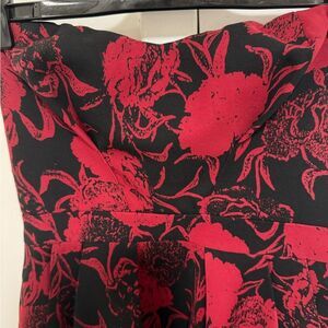 Jack Afalo Strapless Mini Dress in Burgundy/Black Floral Print. Size M.