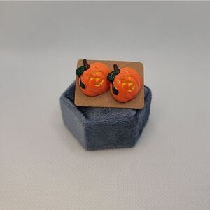 Handmade, unbranded jack-o-lantern earrings. The charm is a hand painted resin, so colors and design may vary between the 2 earrings. I am unsure what the metal is and whether it is hypoallergenic or not.