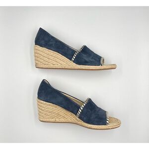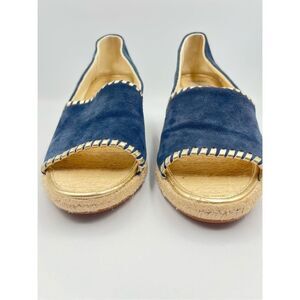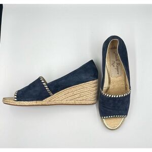 Jack Rogers Preppy Palmer Wedges Espadrille Suede Midnight Blue Gold size US 10