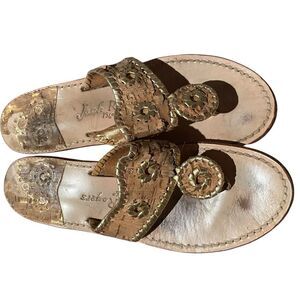 Jack Rogers Women's Metallic Gold Sandals size 8 great classic style see pi
