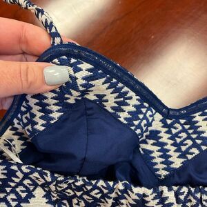 Ties behind the neck and has two pockets. It is a side zipper. Measures 13” across the waist. Bust approx 16” across. Has silicone at d the inside bust to keep it in place. Inseam is 1-1/2” Top of the bust to the hem is 23-1/2”