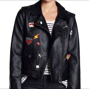 Majority of the patches have been removed. Small blemish where pins were removed. Overall great condition, Only worn a few times