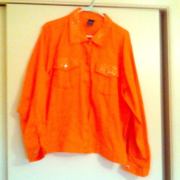 Orange with silver rhinestones on collar and lapels