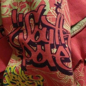A South Pole graffiti jacket. Not zipper-able. Yes it came that way. Tons of awesome designs on it