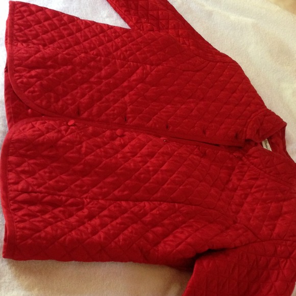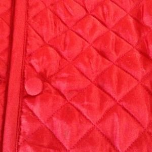 red five button lightly quilted jacket with princess styling. No pockets. Unlined