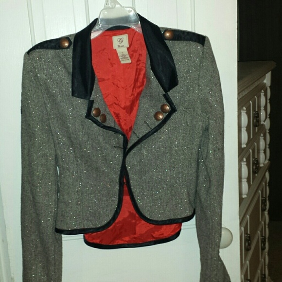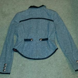 Classy and a bit sparkly..fitted with copper buttons and black satin trim and collar
