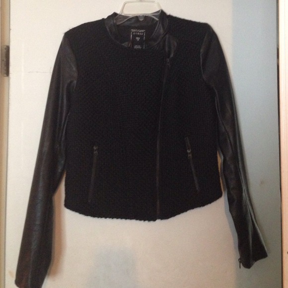 Black leather and knit jacket by guess, very nice and fits to the upper body