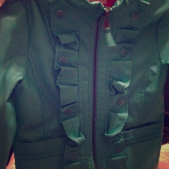 It has leather and some Raffles with buttons zips up and has pockets so cute