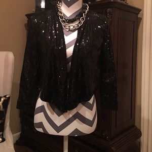Sequin Kardashian Jacket! Black in color looks great w jeans! Worn once and in excellent condition! No exchanges or refunds