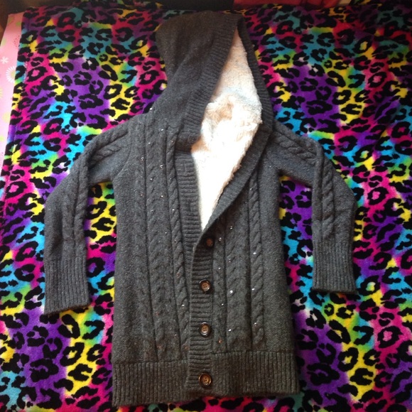 Gray jacket with furry inside.