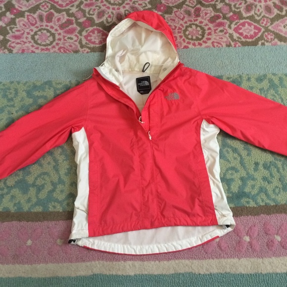 Authentic North Face Wind Breaker in bright pink/salmon color. Lightly used but still in very good condition.