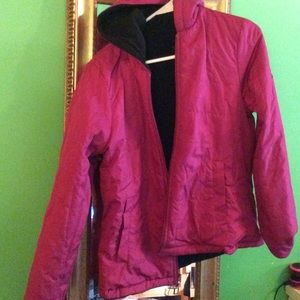 Very nice reversible winter jacket, black and pink, with pockets on both sides!