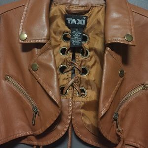 Faux leather jacket. Has a cute design on the back and long sleeve
