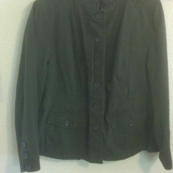 Dark green jacket/blazer. Button up with banded waist. Very cute and good condition. Casual. Looks great with denim jeans or skirt.