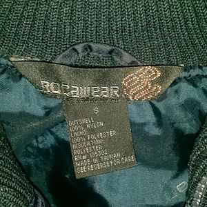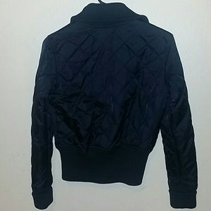 Has some cotton lint that can easily be removed. Other than that, it's in great condition. It looks black but it is actually Navy Blue. The second photo looks like it has white lines going down middle & right side but it's just the flash reflecting off the fabric.