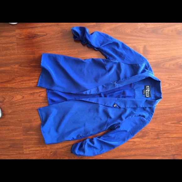 Vibrant blue jacket.