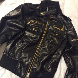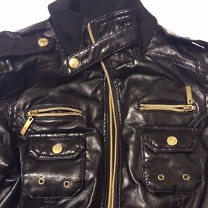 If you fit in small this black jacket is perfect for you. Who doesn't look cute in black. Perfect for winter and fall. Gold on zippers and on buttons of the jacket🕷