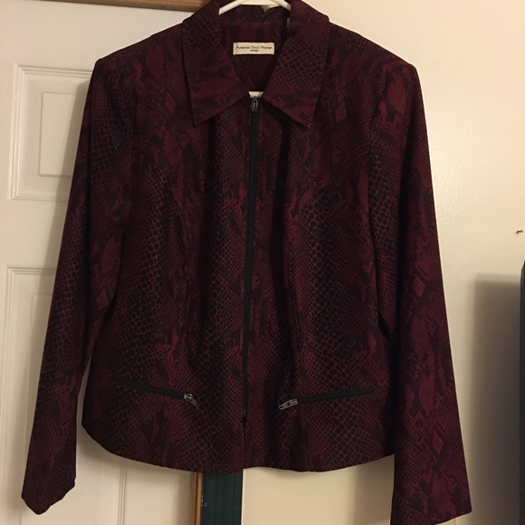 Nice dressy jacket. Worn a couple of times. Zipper front.
