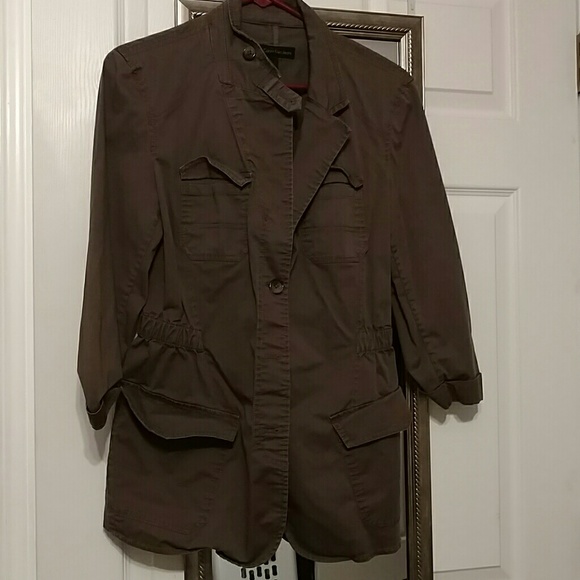 Military/ utilitarian jacket. Elastic waist sides, pockets In front.