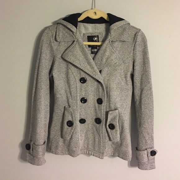 Black, white, grey peacoat