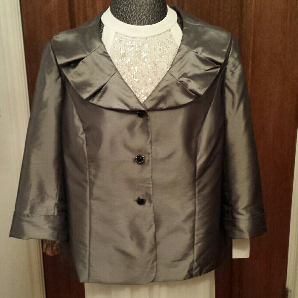 Gray Alex Marie size 14 jacket. Shell 51% polyester 49% nylon lining 100% polyester. Dry clean only.