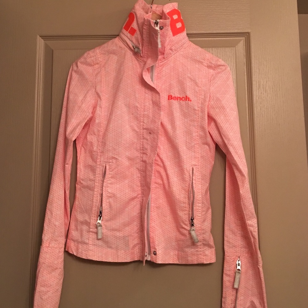 White and bright orange bench snow jacket new with tags with huge removable calller