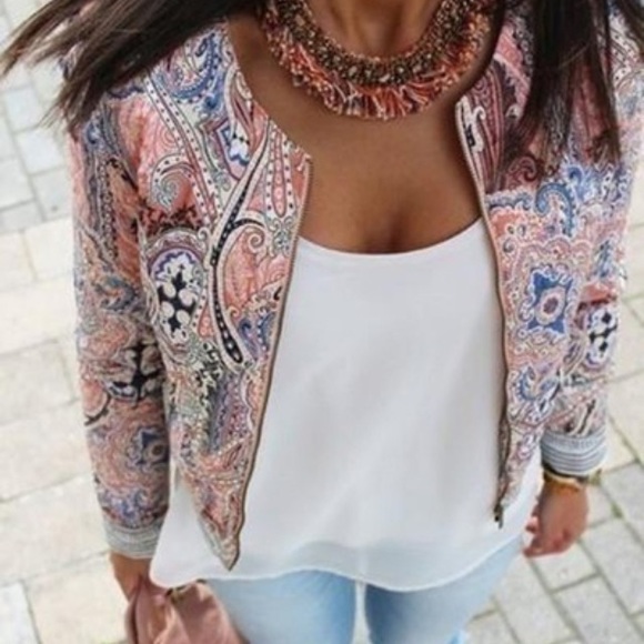 Floral print embroider jacket