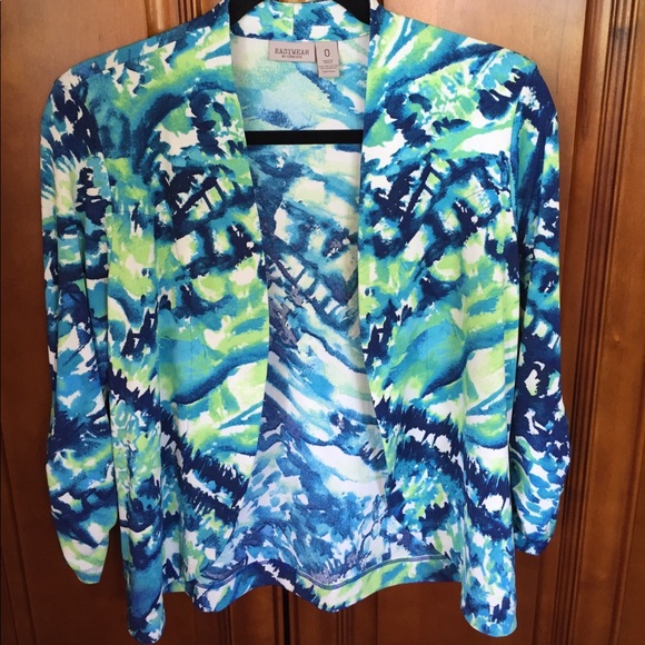 A cute little jacket to wear over a dress or over a tank top. Great Chicos material machine wash cold tumble dry if you wish. Size 0