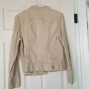Off white corduroy jacket. Snaps up the front. 3 snap detail on the sleeve. Very good condition.