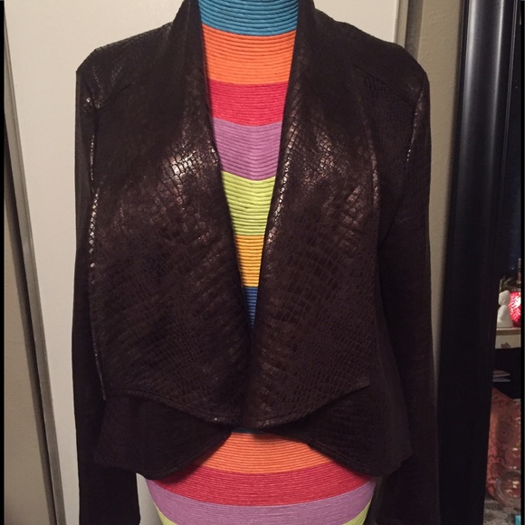 Dark brown faux croc swing jacket. 97% polyester 3% spandex