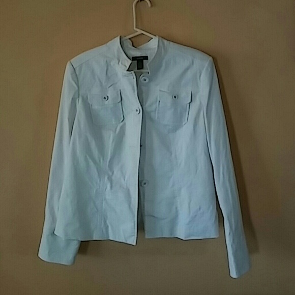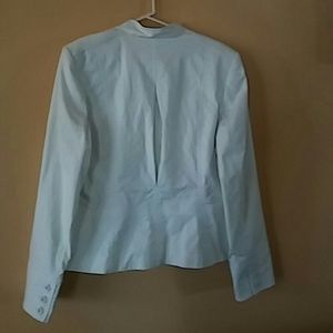 Ben Casey collar, nice cuffs ,with a pleat in the back. 85% cotton, 10% silk, 4% spandex