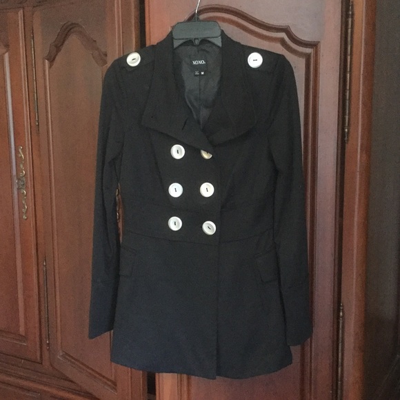 This xoxo jacket is very flattering on, it runs a bit small, even thou it's a medium, just in time for fall, lightweight, very cute and in perfect condition only worn once.