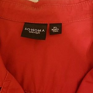 Red button down jacket
