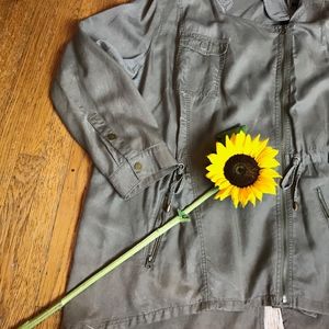 really light. can dress up any outfit. Can fit like an 18 or 20 because of the draw string. Really flattering.