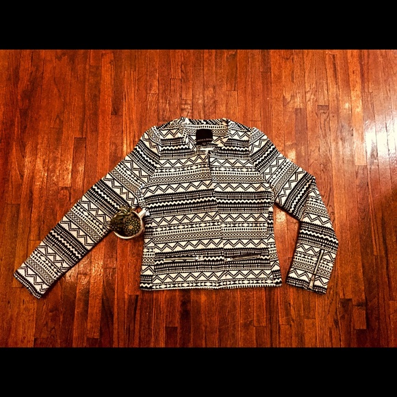Aztec print Harlow’s & Graham jacket. This jacket has a casual, blazer style made of great quality material. With its off-white and black color can be used for any great formal street wear.