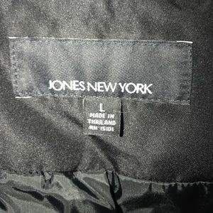 Cute puffer jacket in black with soft brown faux fur on collar and cuffs. Snap front slit pockets