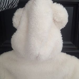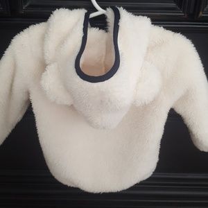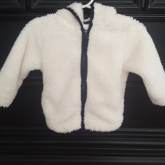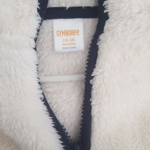 Super soft fleece off white jacket qith navy piping.