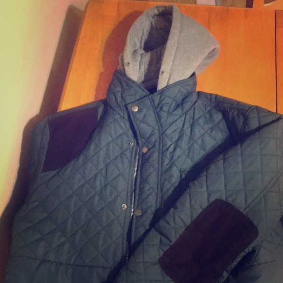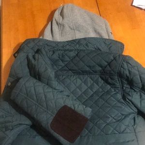 Nice green dissident jacket to resist rain and cold weather with grey hoodie