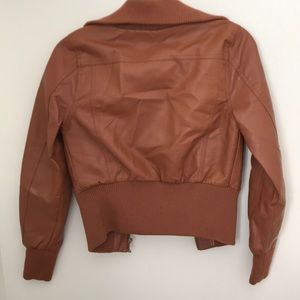 This jacket is in great condition! It has two pockets and two smaller pockets with zippers. It has barely been worn. The bottom half the jacket hugs your waist.
