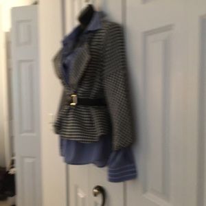 Hi, what is the fabric content? What are the measurements - shoulder to shoulder, underarm to underarm, center back length , & sleeve length? Does it include the belt? Love your styling suggestions! x0x0x