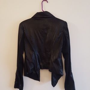Fitted, jacket, stylish, polyester (looks likr shiny leather outer shell)