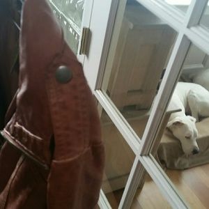 Leather warm brown like new, I bought this for one trip we took and then realized I'm not really a leather person it's in excellent condition