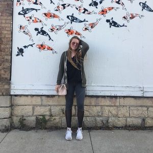 Green brandy zip up jacket. VERY SOFT. I have worn it a few times out and about. One size fits all. Not sold anymore