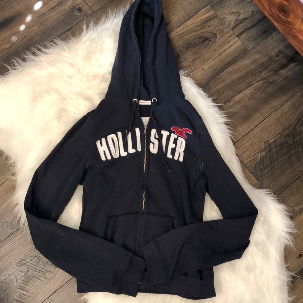 Navy Hollister zip up hoodie, size L. Good condition!