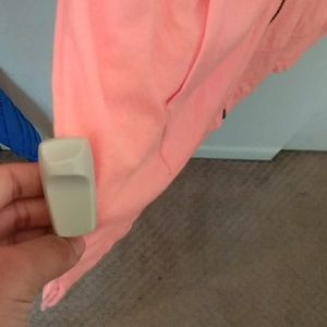 Thin. Never worn. A salmon color. Unfortunately still has the security tag thing.