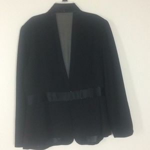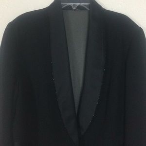 Beautiful black blazer. Beading around collar and waist and sheer back. Like new, never worn. Tag was ripped out at the top only because it showed through the sheer back.