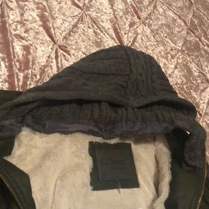 Olive green Velma leather Fur jacket with detachable hood