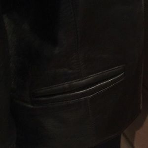 Super soft Leather moto style jacket with slit pockets. Back hem sits above your bum at waist and zipper sits just below the belt line.