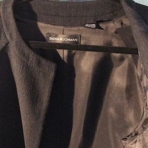 Dana Buckman cotton/linen jacket, dryclean only. Beautifully made. 20 inches from shoulder to bottom front and back. Faux slash pockets in front. 79% cotton 21% linen.